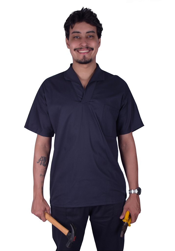 Jaleco Fechado Manga Curta em Brim – Modelo Italiano